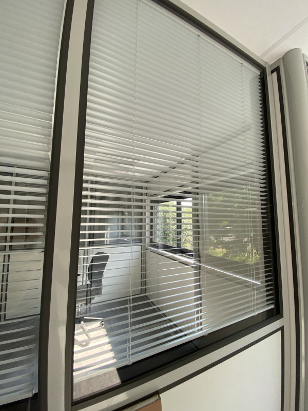 L’ensemble de la cabine a été réalisé en vitrage semi-hauteur, avec des panneaux mélaminés en bois et des portes en aluminium adaptées PMR. Tous nos projets sont sur-mesure.